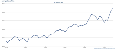 - Average sales price in June of 2022 was $434,35, and in 2021, $376,599.