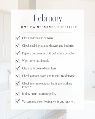 February Home Maintenance Checklist for Homeowners For a blank printable checklist, click HERE. Share